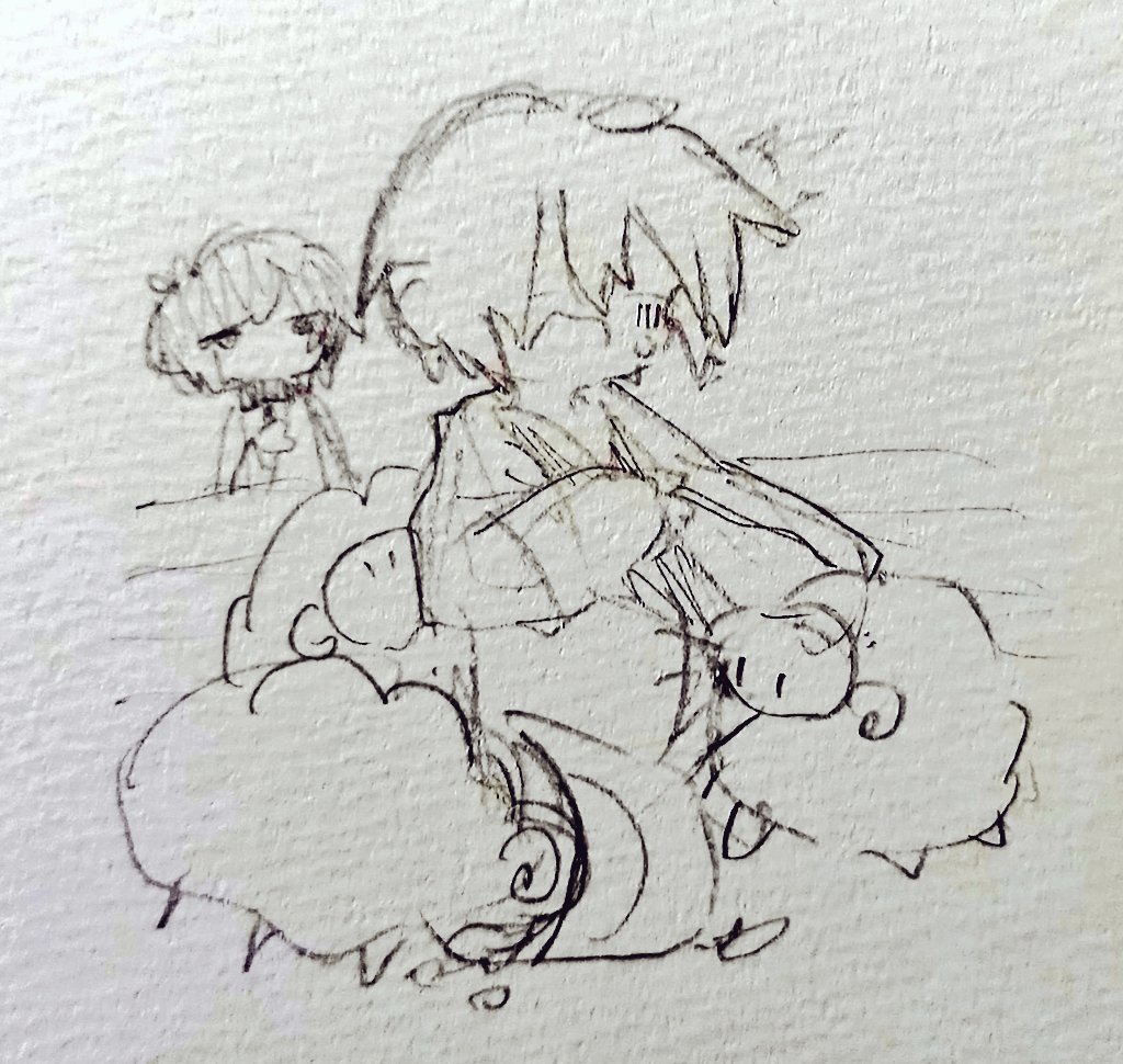 なんかよくわかんないけど急にこんな感じのふたりが頭をよぎった #そらるの絵 #まふあーと