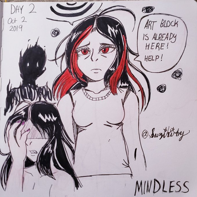 Inktober Day 2: Mindless Artblock made me lose my motivation on day 2. I'm heading to bed before I lose my mind even more. #Inktober #Inktober2019 #Day2 #mindless #artsnackschallenge