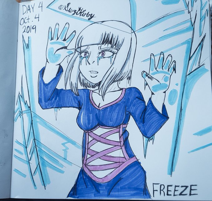 Belated: Day 4: Freeze Forgive me for not posting this yesterday due to a headache I got and my body being so much pain, plus I had to help out my family preparing my nephew's birthday party today. #Day4 #day4freeze #freeze #inktoberday4 #Inktober2019 #Inktober #belated