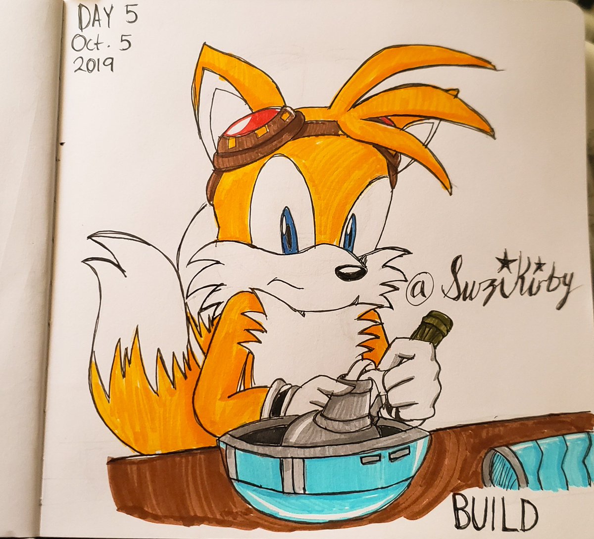 Day 5: Built I wonder what Tails is building? #day5built #day5 #Inktober2019 #Inktober #milestailsprower #tails #artsnackschallenge