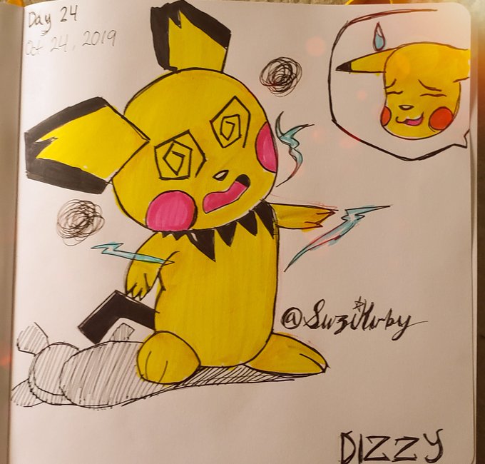 Belated Day 24: Dizzy Pichu used too much Thunderbolt attack, it got dizzy for a while. Pikachu warned Pichu earlier to watch it's limits. #Pichu #Day24 #Dizzy #inktoberday24 #Inktober2019 #Inktober #artsnackschallenge #artsnacks