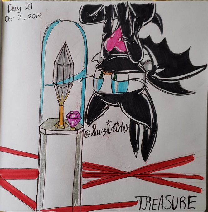 Belated Day 21: Treasure There goes the Treasure Hunter stealing jewels and she's going to steal the Master Emerald after this. #Day21 #Treasure #Inktober2019 #Inktober #RougeTheBat #artsnackschallenge #artsnacks