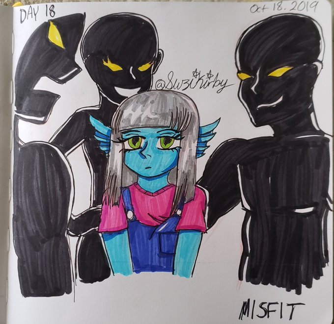 Belated Day 18: Misfit All these bullies are bullying her all because she's not a human. #Day18 #Misfit #Inktober2019 #Inktober #artsnackschallenge #artsnacks