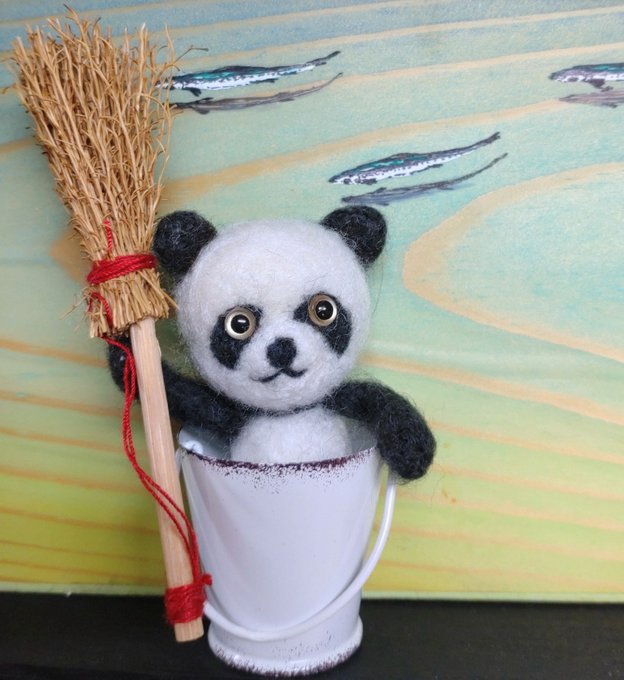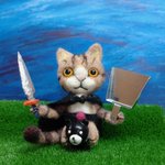 Nijigen弐 ファンアート コンテスト クマに跨った猫のNijigen戦士です。竹光の剣とチリトリの盾で武装しています。 羊毛フェルトで作りました。 #NijigenFanArt #羊毛フェルト #猫戦士