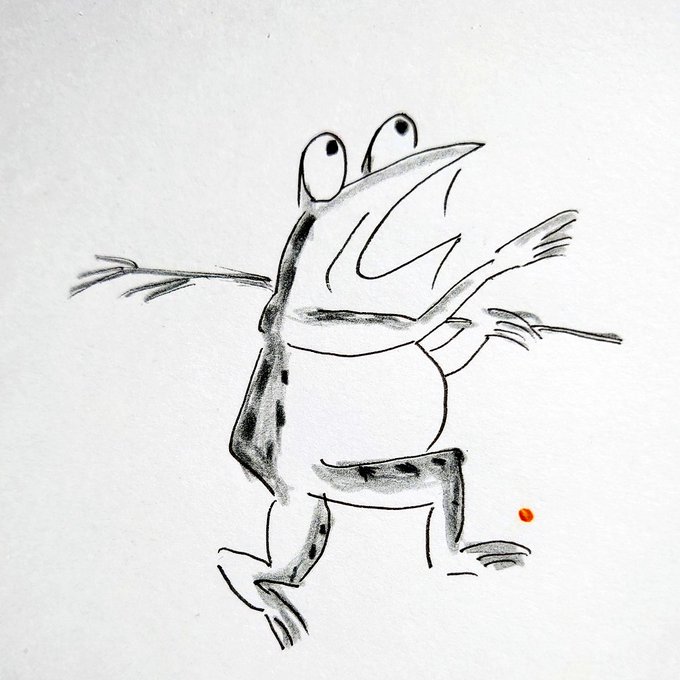 鳥獣戯画風🤗 #ゆるイラスト #かえる