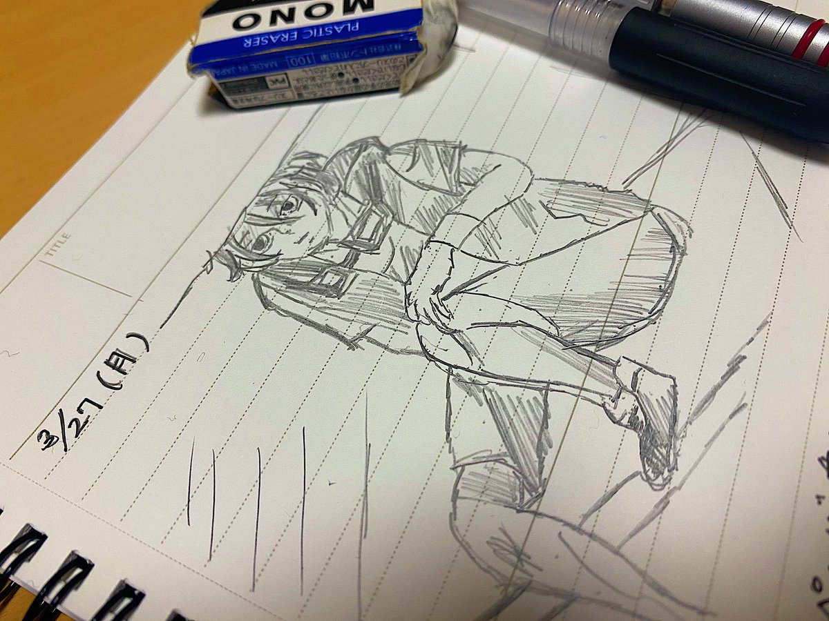 最近の絵日記 (3/24~27) #絵 #絵日記 #イラスト #落書き #ラクガキアート #アート #ノート #シャーペン画 #絵が好きな人と繋がりたい #絵描きさんと繋がりたい