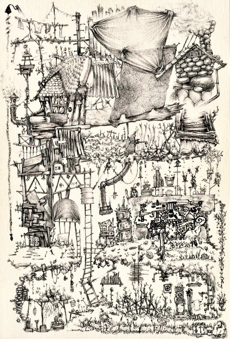 Vault七拾六番地 #FSOイラコンFA #ボールペン #ペン画 #建築 #オリキャラ #セルフビルド #妄想建築 pixiv.net/artworks/83044…