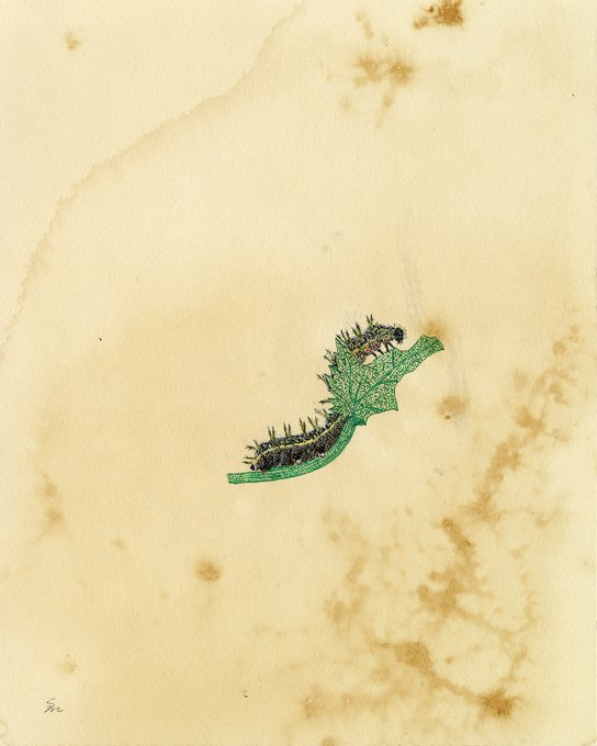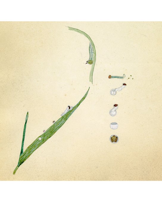 ヒカゲチョウ 以前住んでいた家の窓下にササが生えていて、ヒカゲチョウが産卵してくれました🦋 孵化の場面に立ち会えたので観察しながら描きました。 猫のような顔立ちの愛らしいイモムシ🐛 右列上はお尻を持ち上げフンをしている姿☺️ オンラインストアは明日までとなります mgrkyoto.stores.jp