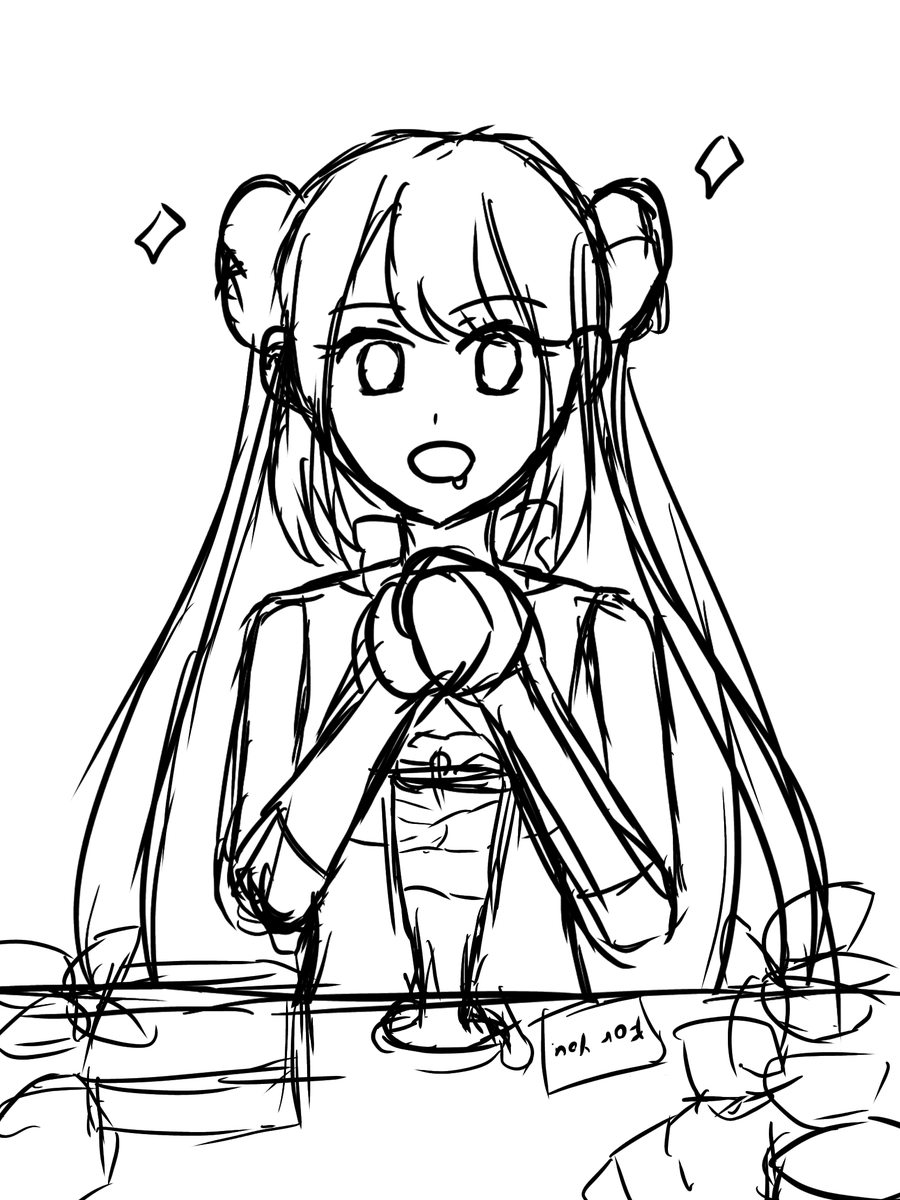 #このタグを見た人はラフ画とその完成絵を見せる ラフだと顔が丸かったりする。