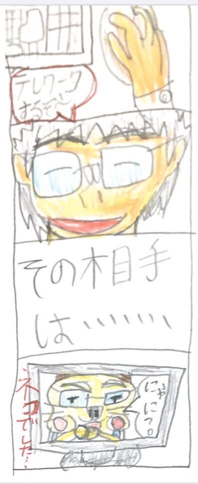 猫ちゃんの飼い主がテレワーク中‼️その相手とは!? #漫画 #4コマ漫画 #漫画好きと繋がりたい #漫画連載 #漫画が読めるハッシュタグ #Zoom #猫 #オリジナル漫画 #オリジナル作品 #テレワーク #短い文章で怖がらせたら優勝選手権