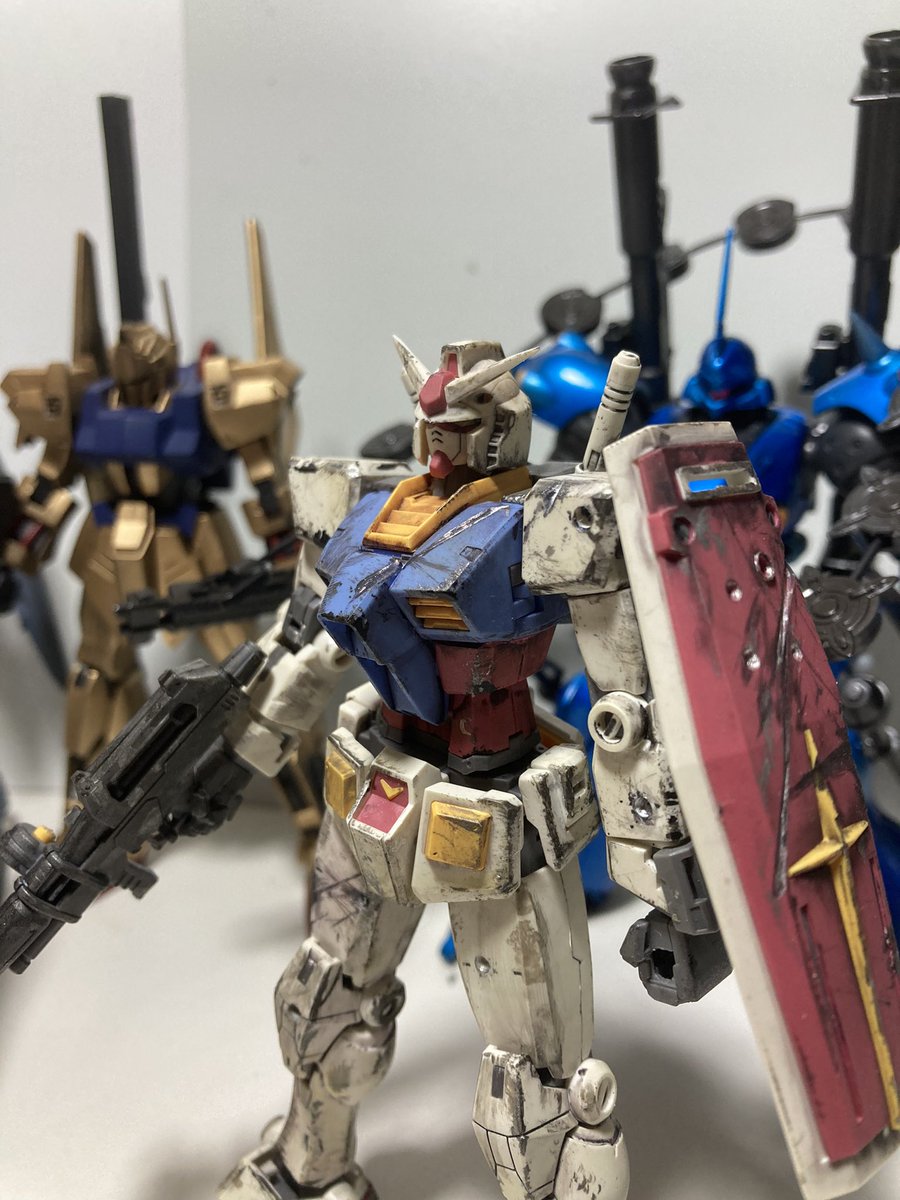 今日の模活 ①子供の作った ボロボロガンダム 関節がゆるくなったなったので修理 (これでよく遊ぶので) ②デルタプラスのリペイント ③グフ&ケンプ 武器作り ④過去に投稿した 百式のバーズカーが見つかりました。 #ガンプラ好きと繋がりたい #ガンプラ #ガンプラの画像貼るとRTされると聞いて