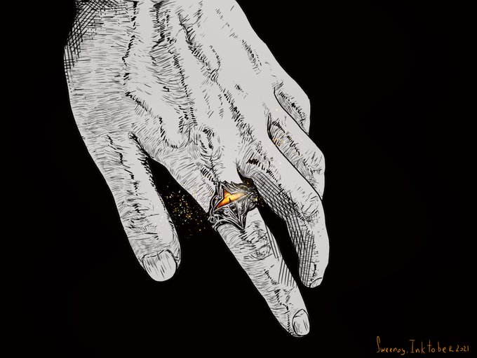 Inktober 31. Risk "A ring enchanted by the orange eye of Kalameet, the bringer of calamity. Doubles damage received by its wearer. A useless ring befitting of no finger. Best left unknown, or at least well hidden" Finally done #DarkSouls #Inktober #inktober2021