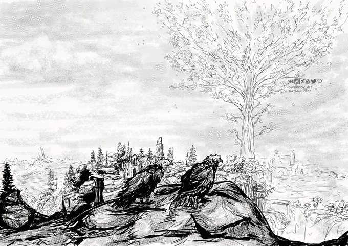 #inktober2022 07. Trip "The Erdtree...is close. Only a little further till the foot of the Erdtree, and the accord is fulfilled. It takes me back. I was born at the foot of the Erdtree. Where mother gave me my purpose" #inktober2022trip #ELDENRING #EldenRingFanart #Melina