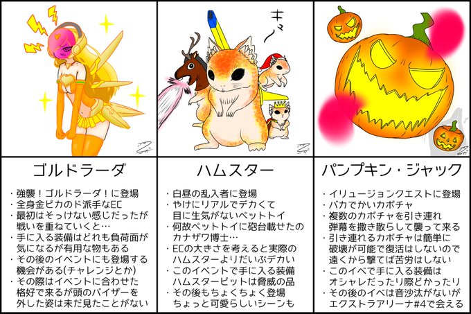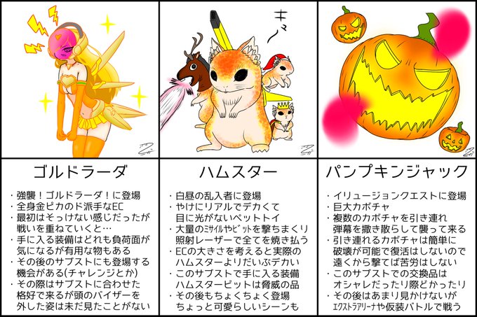 落描きボスまとめ2(2枚目)と 前回の改訂版(1枚目)です #絵レコド #エレクトリアコード