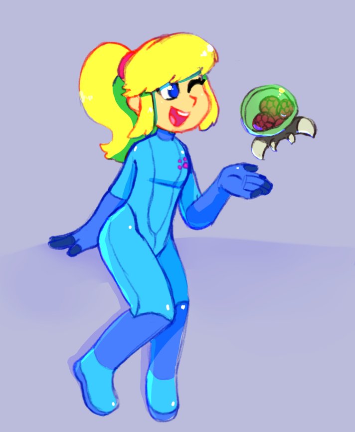 58 290 Tested out my new tablet by doodling a little Samus and her babi :D 22/03/10 01:37