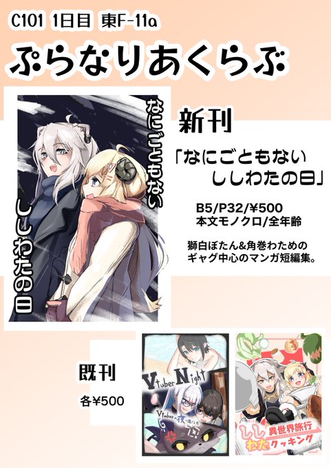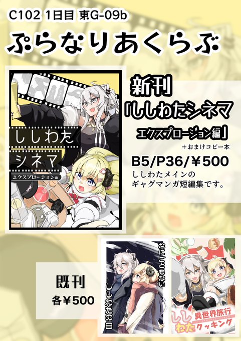 あなたのサークル「ぷらなりあくらぶ」は、コミックマーケット102で「土曜日 東地区 “G” ブロック 09b」に配置されました!コミケWebカタログにてサークル情報ページ公開中です! webcatalog.circle.ms/Perma/Circle/1… #C102WebCatalog 夏コミ受かりました! ししわた本を鋭意製作中でございます!