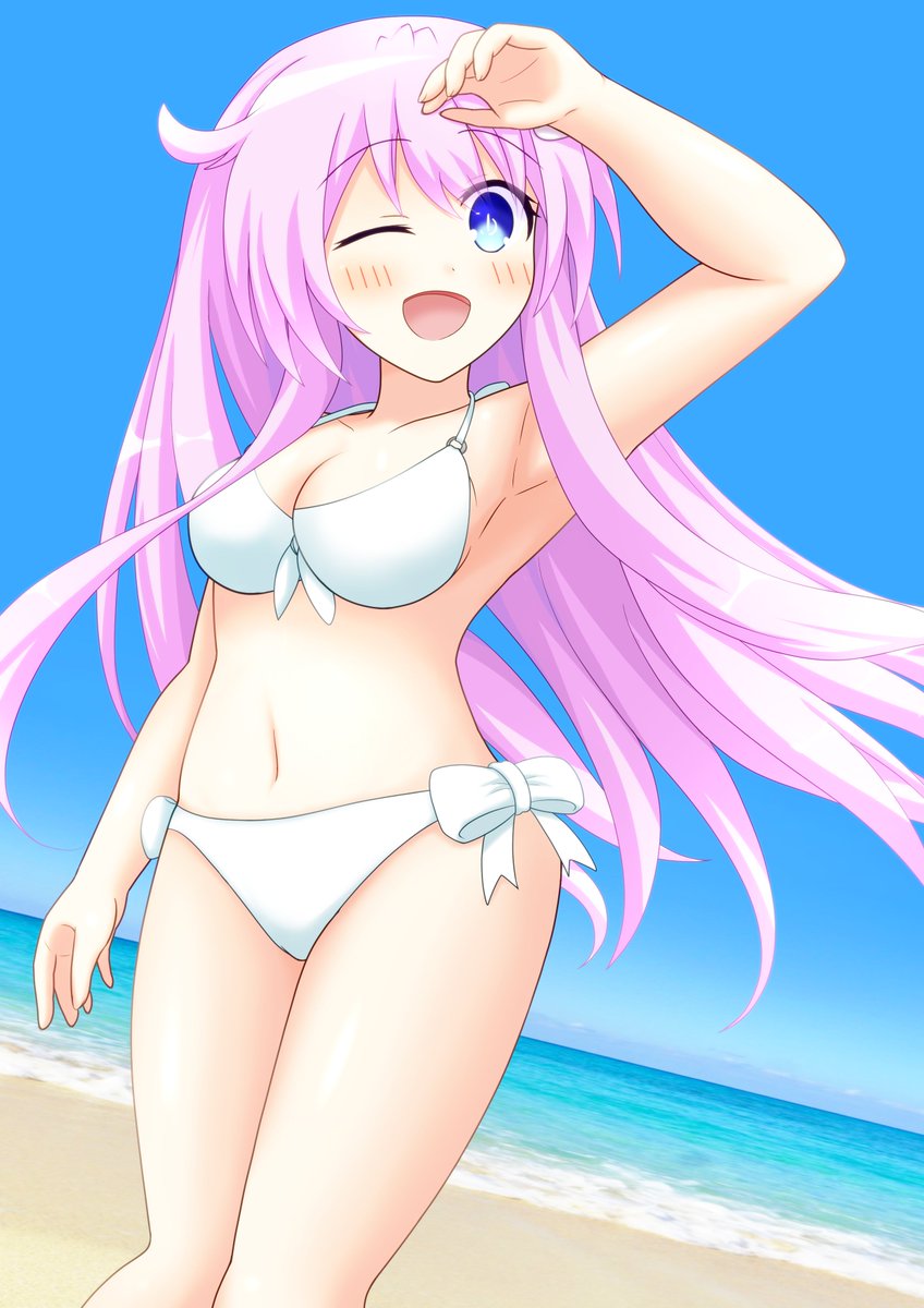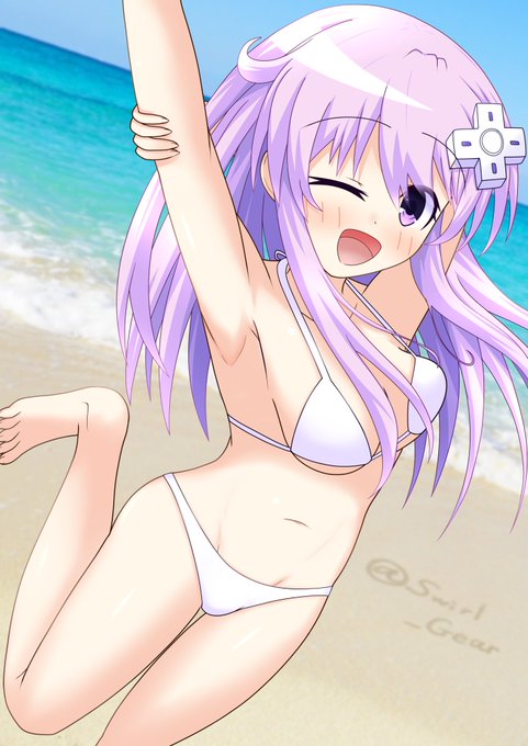 夏の水着パープルシスター描きました! そういえば今日は海の日でしたね