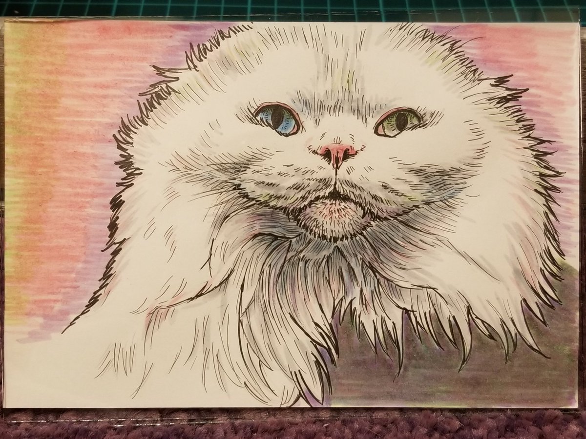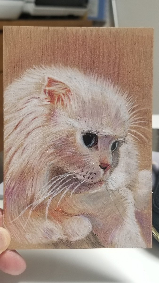色鉛筆画を描きまくろう‼ と、また思いました✏ #色鉛筆画 #猫好きさんと繋がりたい #スコティッシュフォールド #白猫 #オッドアイ #colorpencil #芸術の輪 #絵描きさんと繋がたい