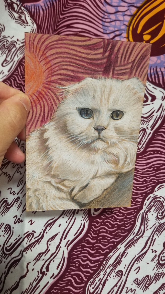 おほようこわざいます😊 プクにゃんの絵が完成したのでツイート✨ @Aoi0116Mai1027 お目々くりんくりん👀 うちのロシアンも完成させないと‼ #色鉛筆画 #Pencildrawing #絵描きさんと繫がりたい #猫好きさんと繋がりたい #スコティッシュフォールド #イラスト好きな人と繋がりたい #芸術の輪