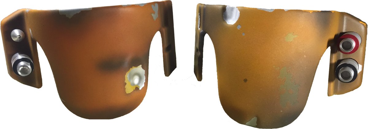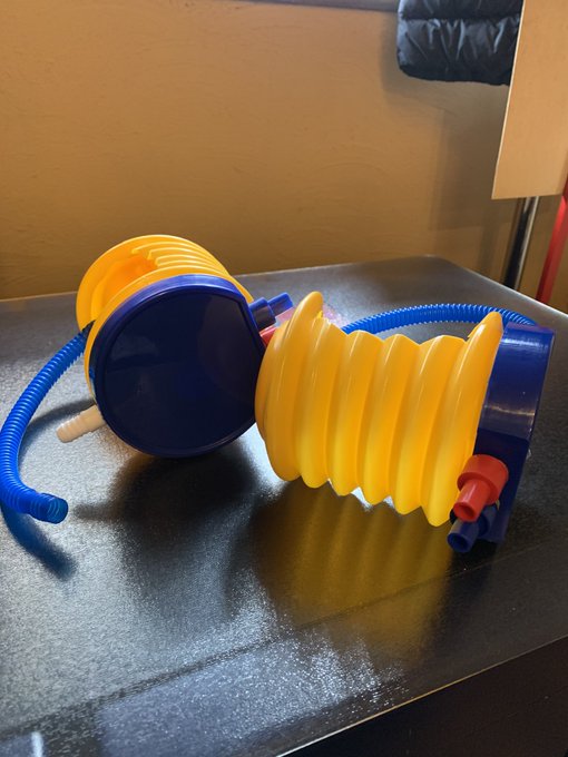 ボバケッツツ製作記④ 膝アーマー 黄色くてサイドに2つのダートを発射するパーツがついてる! 足踏み空気入れを思いついた時は天才!だと思いました😙 本物も上下のパーツのリングが赤と黒なんですよ!赤青ですが! 拘りは留めるチューブ👍 #大阪コミコンコスプレ #ボバケッツツ #パチモンウォーズ