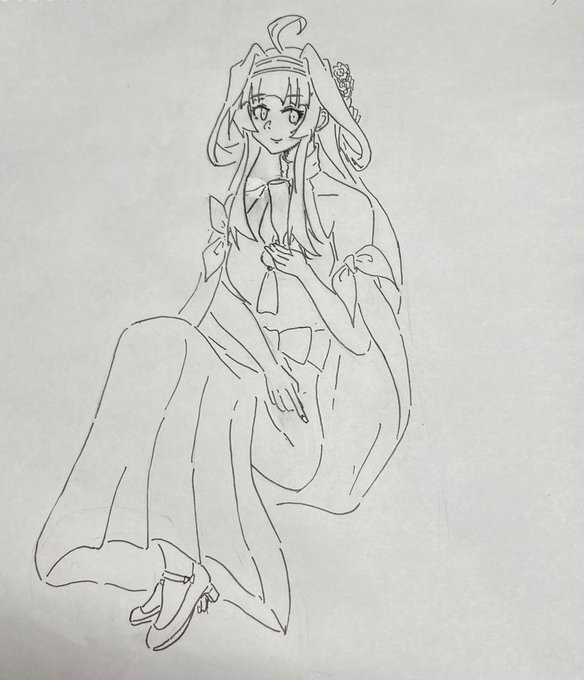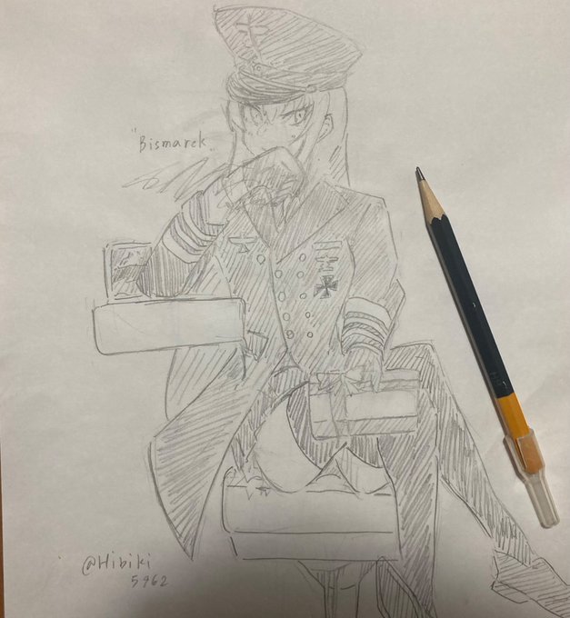 #艦これ版深夜の真剣お絵描き60分一本勝負 #艦これ版真剣お絵描き60分一本勝負_20230214 #艦これ ビスマルク描いたけど… なんかガングートに見える(). こういう構図久々過ぎてわからん…雑過ぎた()