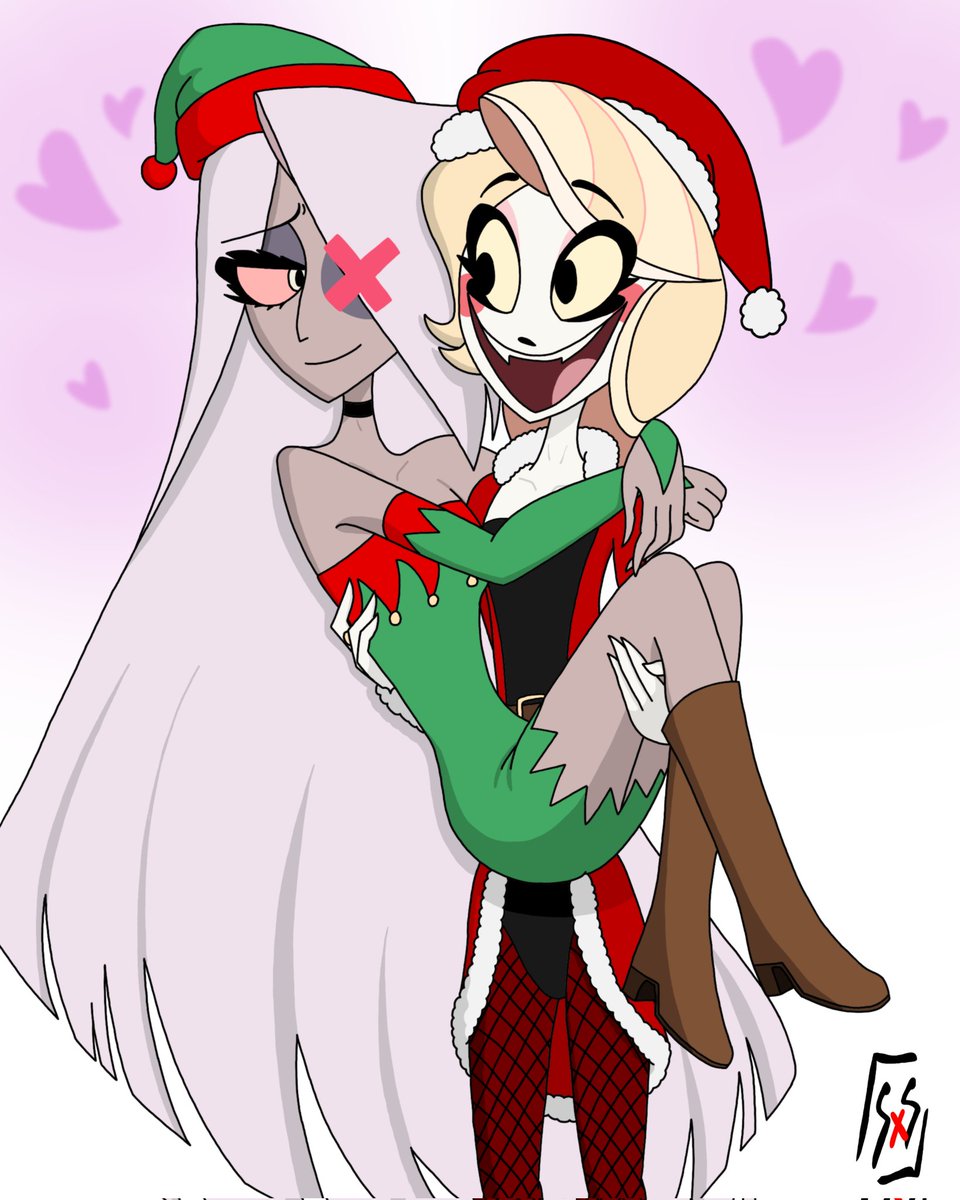 Sigo con las audiciones y llego una elfa con su Claus, tuve que rechazarlas porque era una audicion de elfas, no de Claus... eso venía después. #HazbinHotel #HazbinHotelCharlie #HazbinHotelVaggie #Chaggie #HazbinHotelFanart #HelluvaBoss #HelluvaBossFanart #Christmas