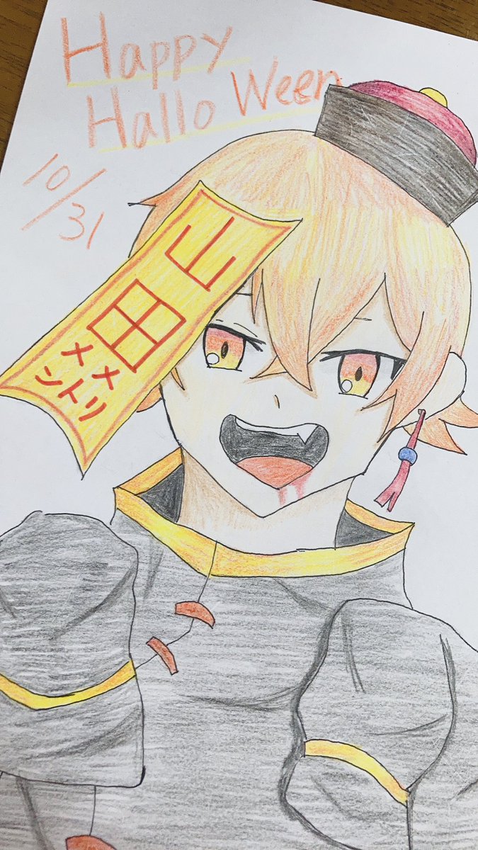#メメリ絵 ⚠️衣装捏造注意⚠️ 一日遅れのHAPPY HALLOWEEN🎃 山田さん✖️キョンシーにしてみました(^-^) (今日までは大丈夫だよね?💦)