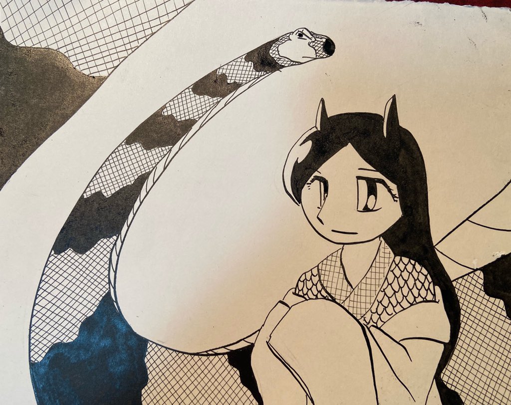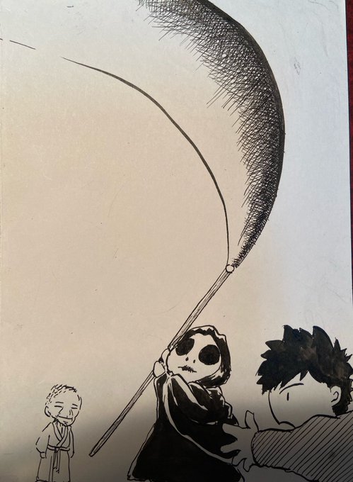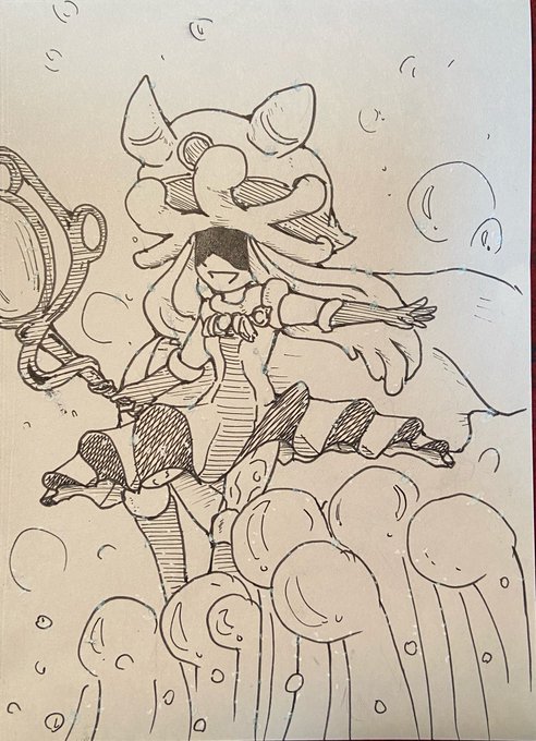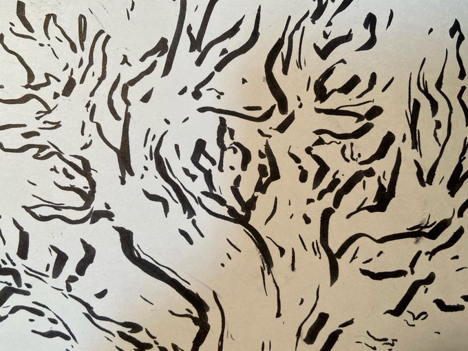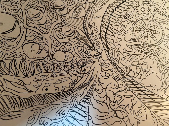 #Inktober2020 19.dizzy #schizophrenia 左半分はある患者さんが「自分の幻覚の世界」と描かれた絵を、記憶を辿り写したもの(ちなみに元絵はもっとお上手です)。いや、この光景を、何処かで自分も見た事があるのではないか。 高揚する精神と抑制する薬との戦いに、肉体は眩暈せしむる。