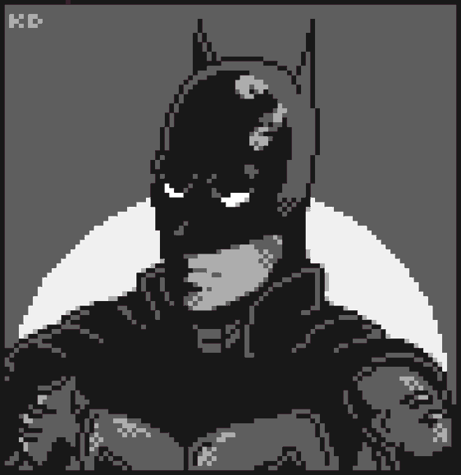 #Batman 2-bits Grayscale #TheBatman #pixel_dailies #pixelart #pixelartist #aseprite #ドット絵 @Pixel_Dailies @aseprite