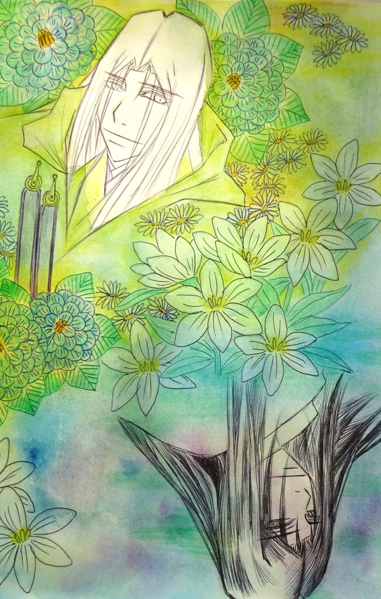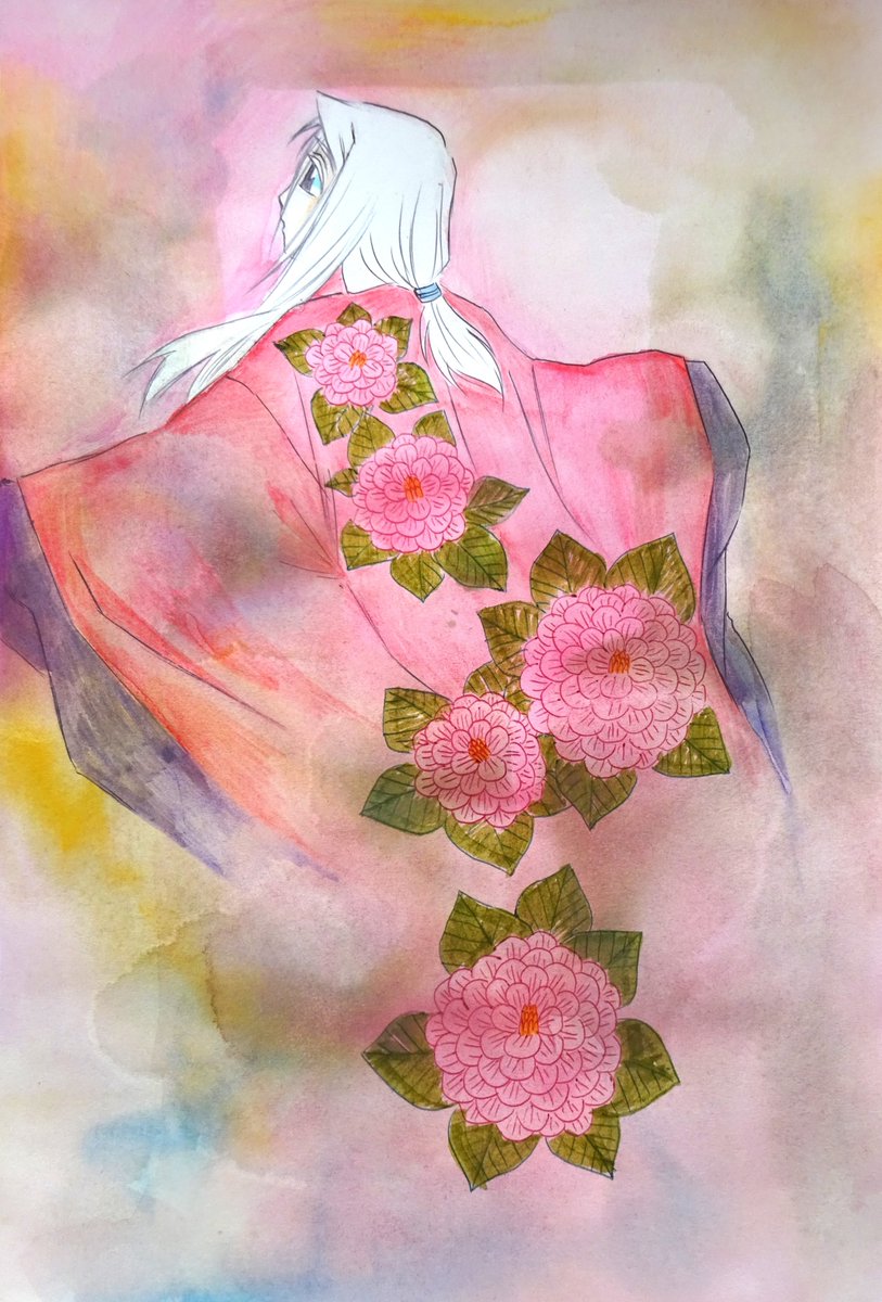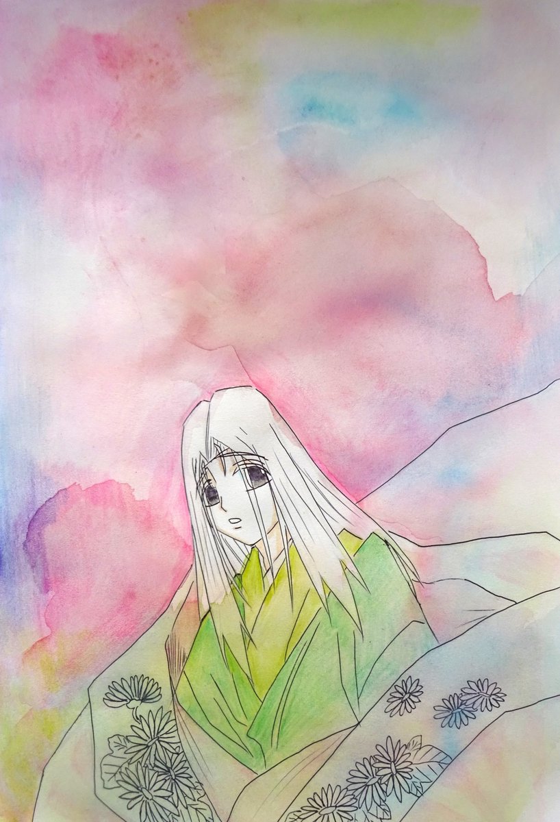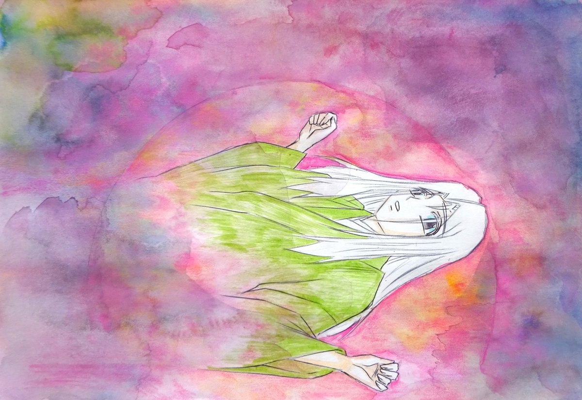 途中絵です。つゆだく水彩絵の具重ねしてます。ダバダバ。水を湯水のように使います。 #絵描きさんと繋がりたい #アナログ絵描きさんと繋がりたい #私の絵柄が性癖に刺さる人に届いてほしい #アナログイラスト