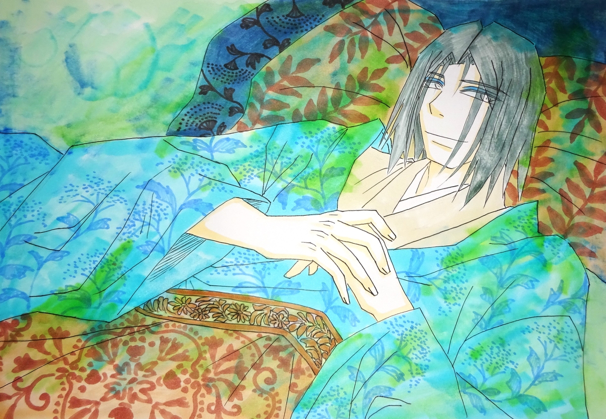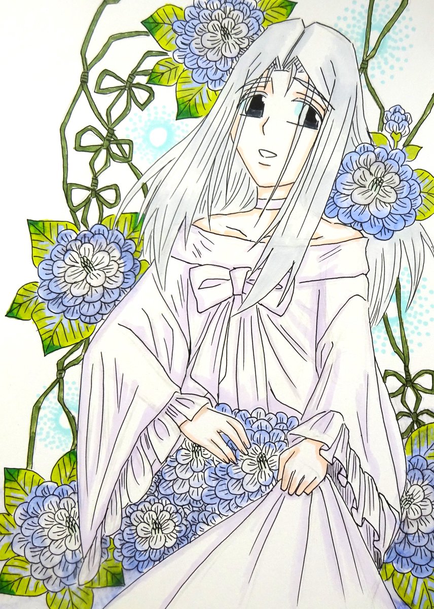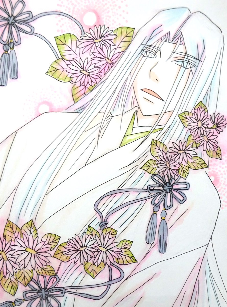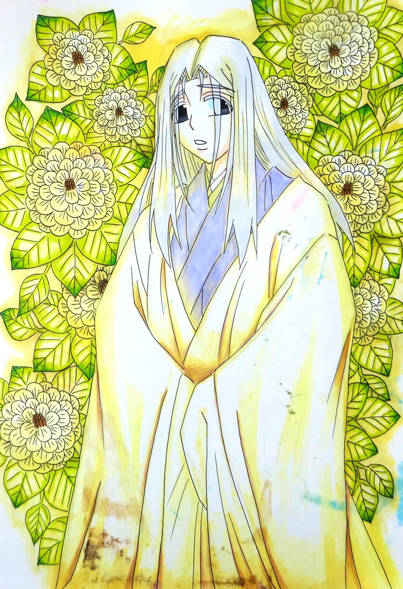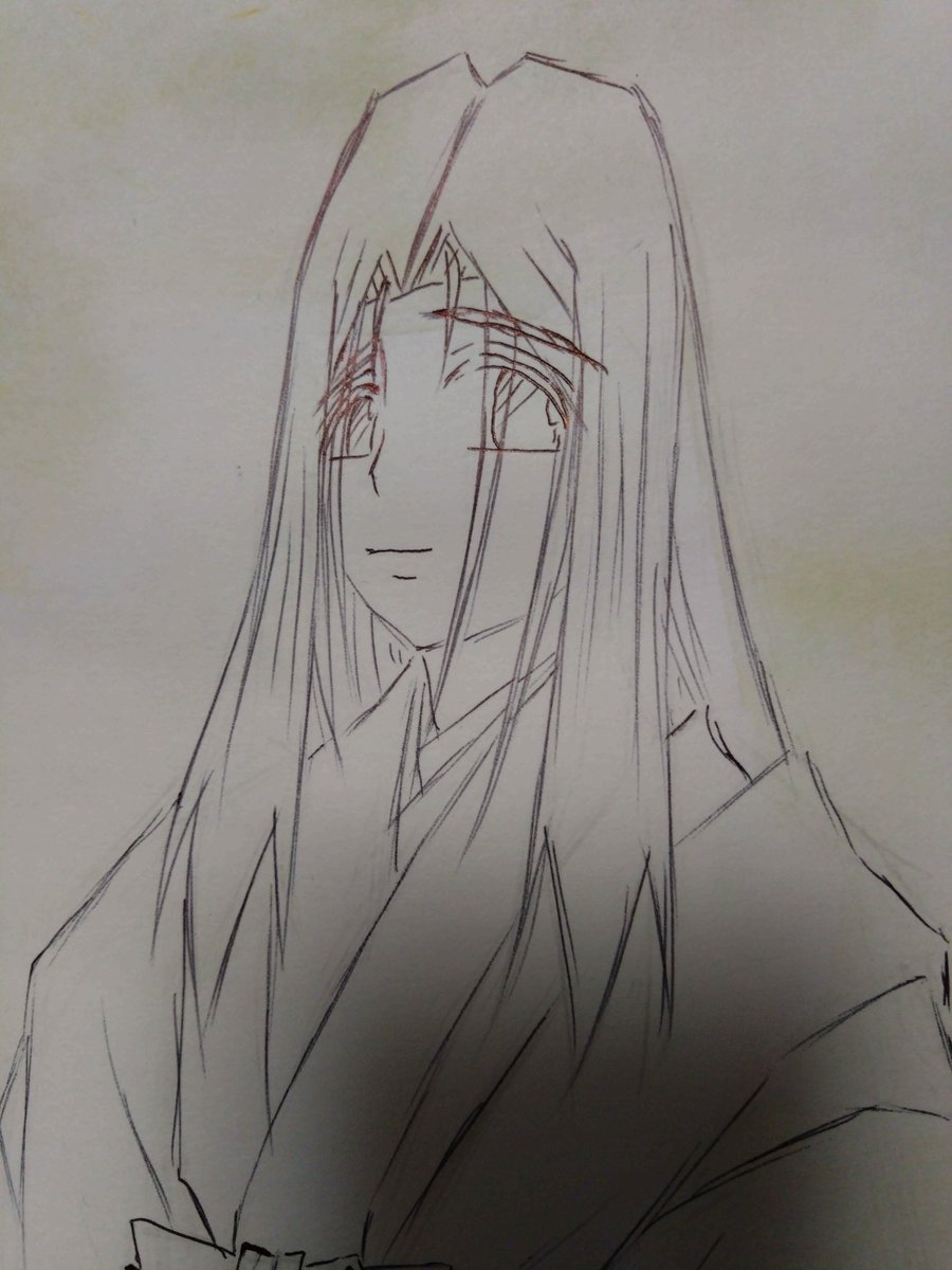 #アナログ絵描きさんと繋がりたい #絵描きさんと繋がりたい #春の創作クラスタフォロー祭り #RTで気になった人フォローする #私の絵柄が性癖に刺さる人に届いてほしい #私の絵柄が好みって人にフォローされたい 不透明水彩絵の具と水性マーカーで描いている最中の線画です 和寄り和洋折衷好きです