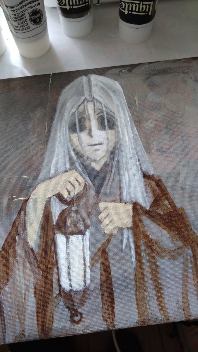 暑くて眠れなかったので、アクリル画描きました、F3号の100円キャンバスです「いにしえの間」 #絵描きさんと繋がりたい #アナログイラスト #私の絵柄が好みって人にフォローされたい #RTで気になった人フォローする