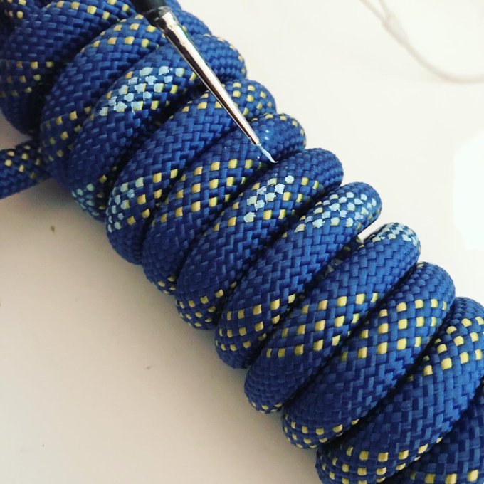 Some of the most absurd things I did for my #DeathStranding #cosplay : Painting a million dots on a strand and bending an aluminium rod into a chain link.