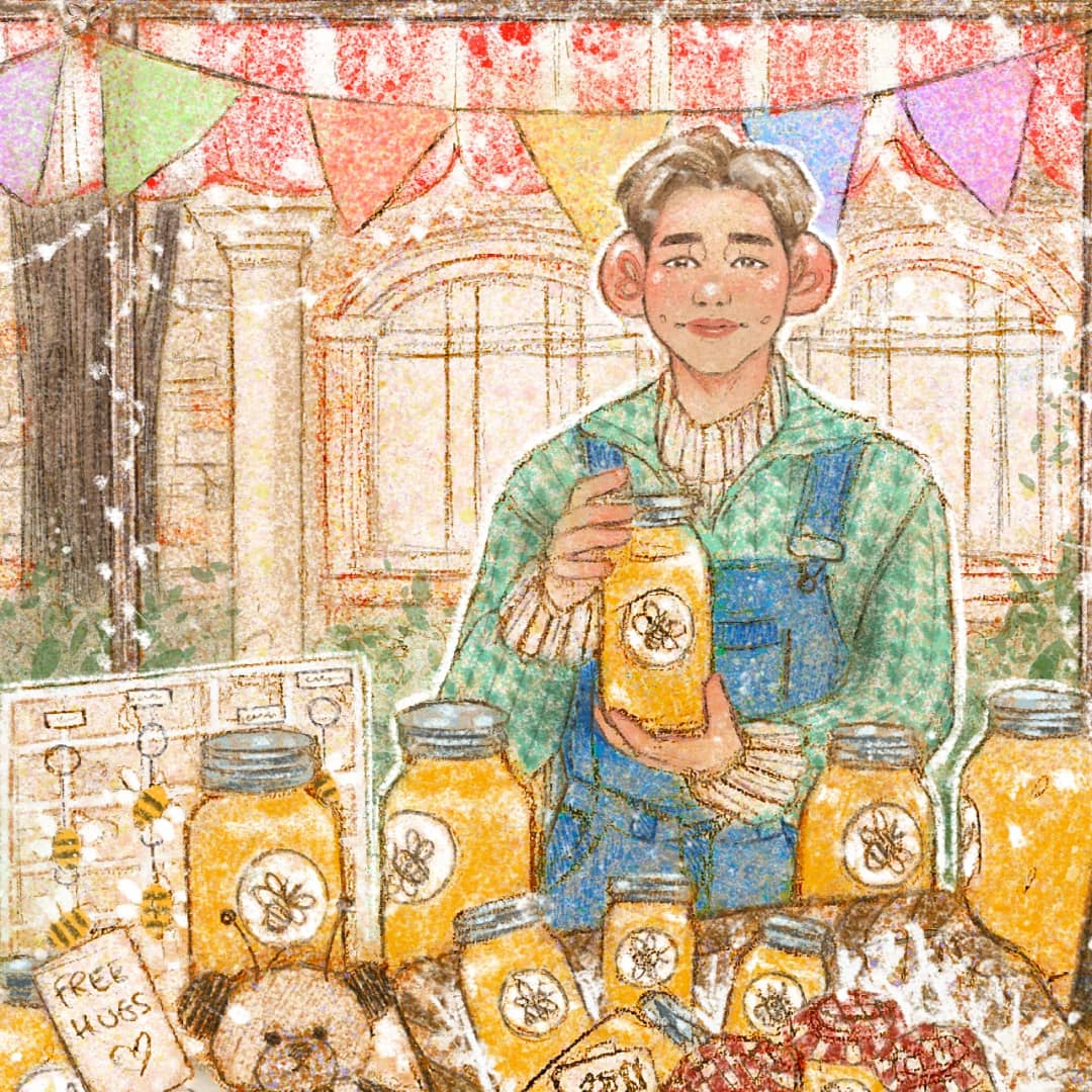 🐝🍯🍯*weoweow*, delivery of honey by our favorite beekeeper Joonie, unconditional fan of mother nature, hurry before all it's gone !! ✨✨🌻🤍 . . . #bts #btsarmy #btsfanart #Namjoon #namjoonfanart