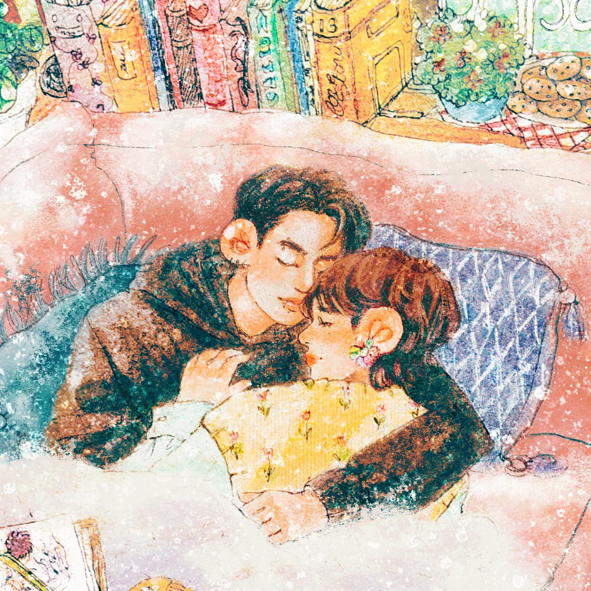 🐘💖✨ cuddling session with sweet powdery taekoo, note: I had this draft since June 22, hence the dust !!achoo 🌬️🌬️, with love Soa 🌷 . #taekook #vkook #taekookfanart #vkookfanart