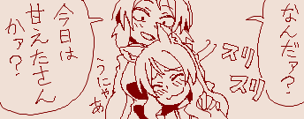 どこぞに上げたらくがき。油断してたら急に部屋に入ってこられた的なやつ。久しぶりに原稿以外のことやった気がした。自分が描いたものに画像レス描いてもらえるとうれしいね。#ケムリクサファンアート #ケムリクサ #りく
