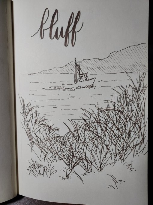 #inktober2022 #bluff This is from a photo I took in Newport several years ago. I love the bluffs, both rocky & sandy, of the Oregon coast. The script annoyed me, but it's inked so I accept it. #ink #pdxartist #Artist #artistontwitter