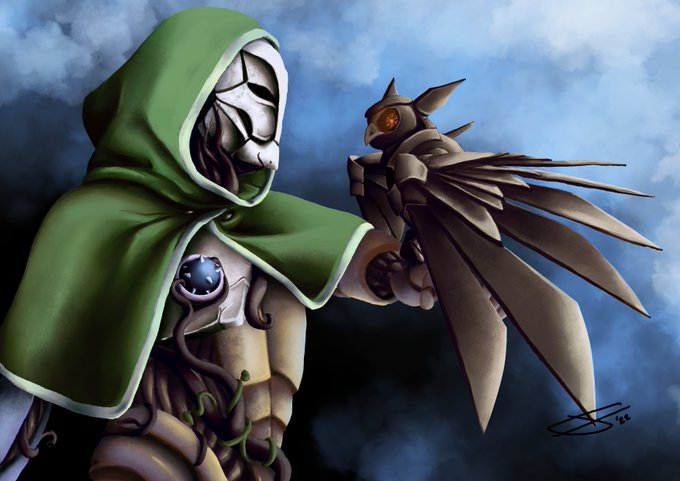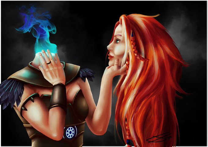 For the super lovely Twitter user, @onewhoisfun and her Dullahan Cleric⚔️🛡️. She now is a follower of Morrigan, hence the feathers but has the neat racial feature of still being able to remove her head! #dndart #ArtistOnTwitter #freeart #dnd #Odysseyoftheros #portrait #art