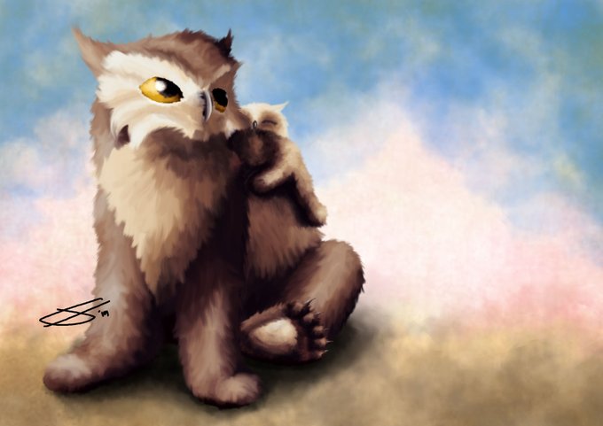Oh god! I lied to you all! Here is my first digital attempt with fur. And what best to test to it on than an #Owlbear and her cub 🥰🥰 #dndart #dnd #beastiary #owl #fantasyart #ArtistOnTwitter