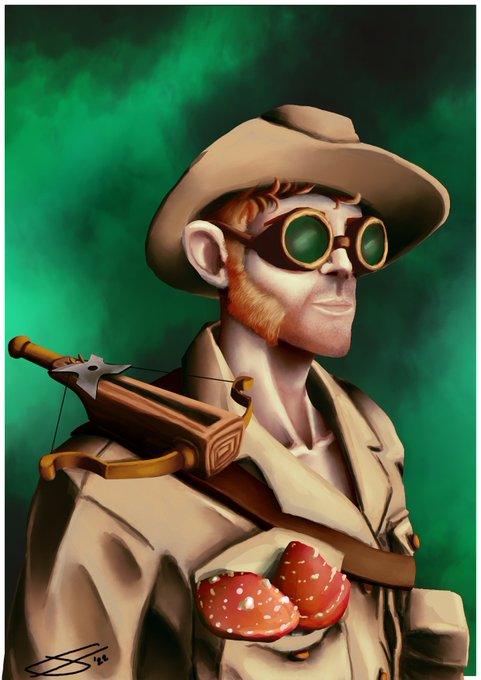 🖌️My first request based on someone's kids art! Was so nice to draw @DnDWithPlumbing son's Gnome Artificer with his cool shoulder-mounted shuriken launcher! I couldn't fit all his pockets in 😂 #dndart #ArtistOnTwitter #freeart #dnd #ttrpg #art #artificer