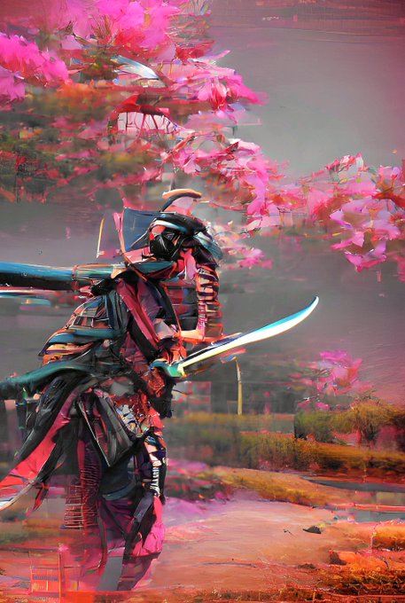 #NFTDrop - AI Series Nihon #06 - Sakura Samurai Generative tribute to Japanese Art. Made using AI, color adjusted and upscaled. 25 editions @ 0.5 $xtz on #Tezos objkt.com/asset/hicetnun… #NFTCommunity #nftcollectors #NFT #artvsartist2021 #NFTartists #CleanNFT #NFTs