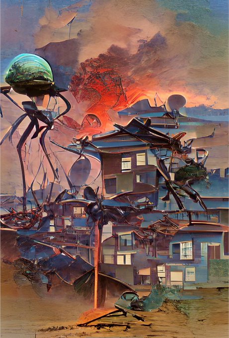 #NFTDrop - AI Series - War of the Worlds Generative #NFT #art made using AI, color adjusted and upscaled 5 part series. Edition sizes of 25 priced @ 0.5 $xtz objkt.com/profile/tastyt… #NFTCommunity #nftcollectors #NFTs #Tezos #artvsartist2021 #NFTartists #tezosart #tez