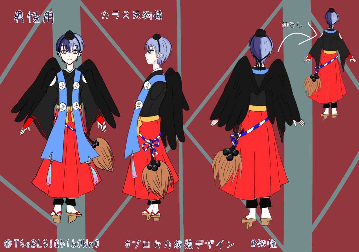 男性用「カラス天狗様」 カラス天狗をモチーフに作りました! よろしくお願いします🙇♀️ #プロセカ衣装デザイン #妖怪