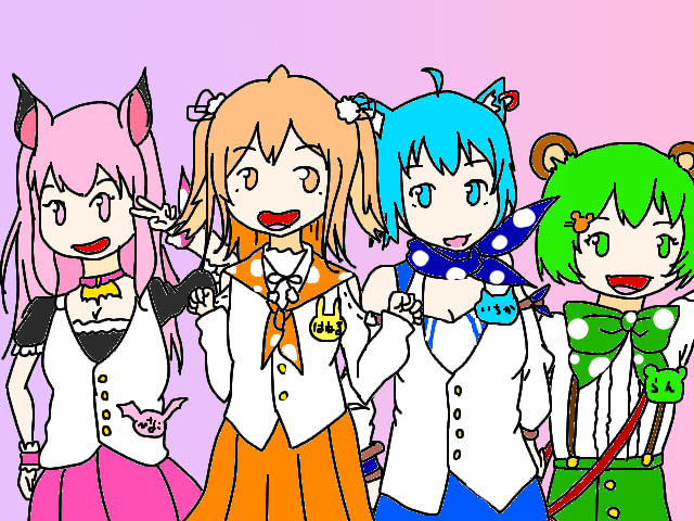 【非公式イラスト】 集合イラスト😄! タグ、ってコレでよいのでしょうか。 文字数も少ない方がいいのかな……。 #はねるあーと #ひなこあーと #いちかあるばむ #らんあーと