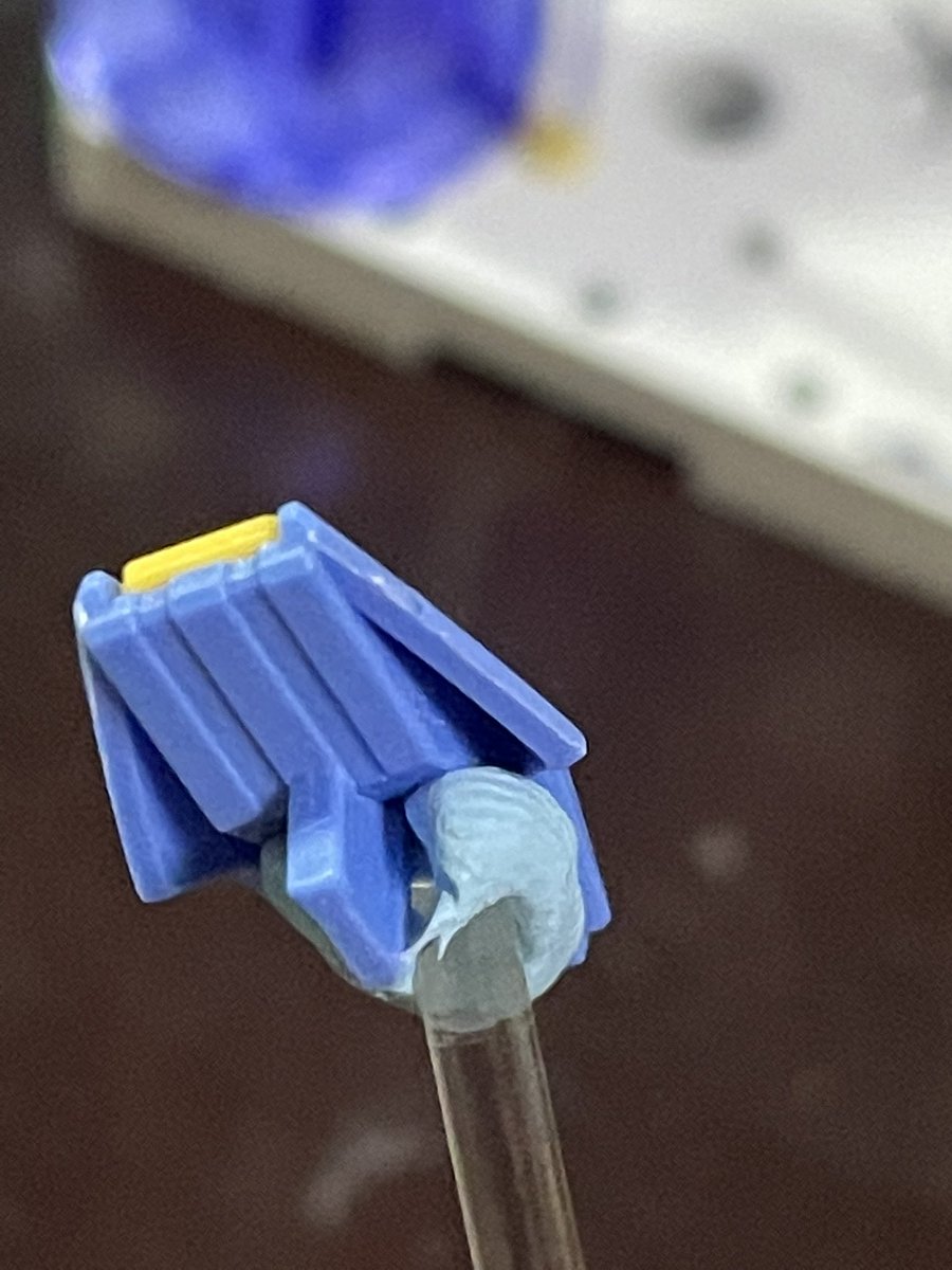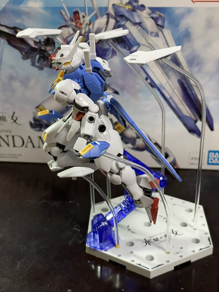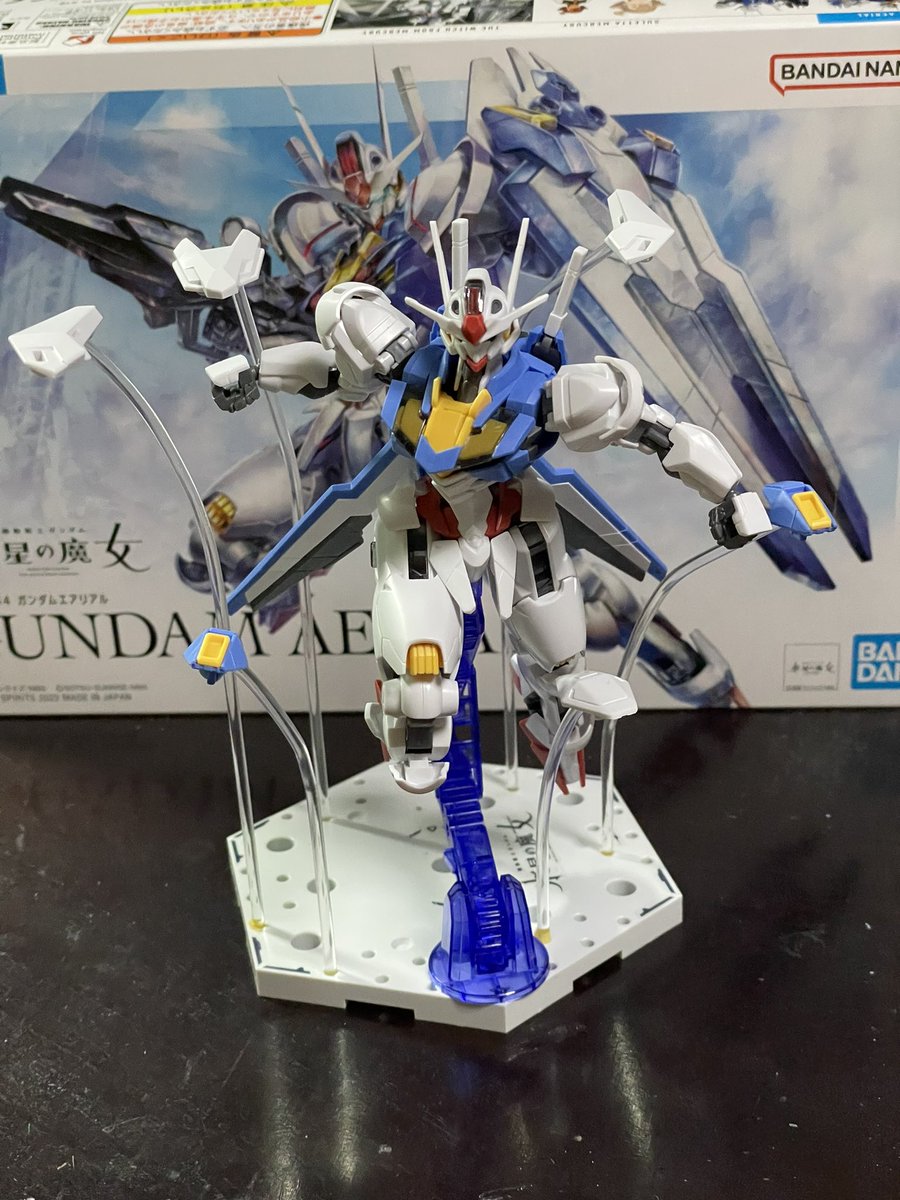 #ガンプラ好きな人と繋がりたい とりあえずパチ組で ビット用で余った透明プラ棒とネリ消しでビット展開、流石に全部展開させると五月蝿い感じがするので一部ビットは腰に、作中でもそんな運用するかも