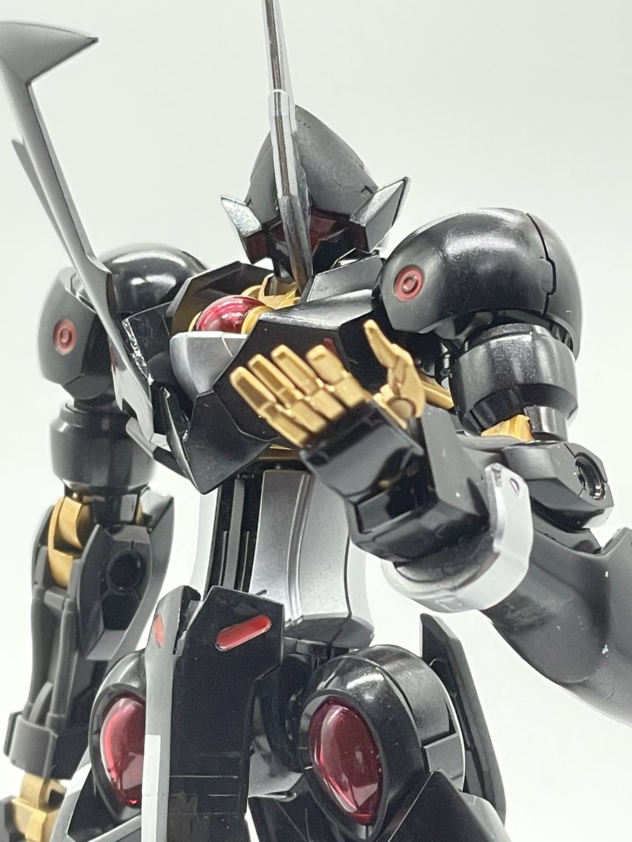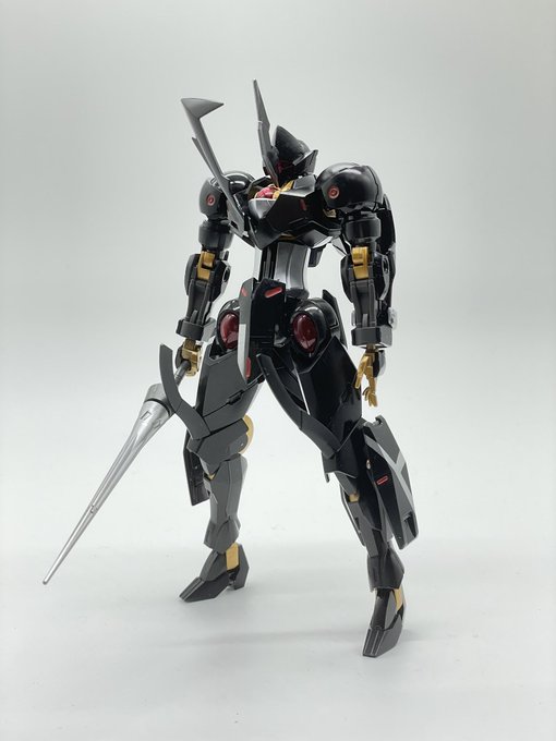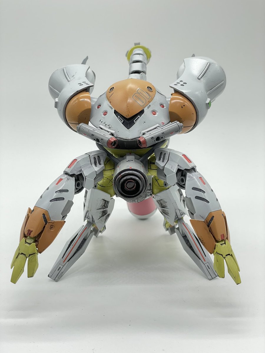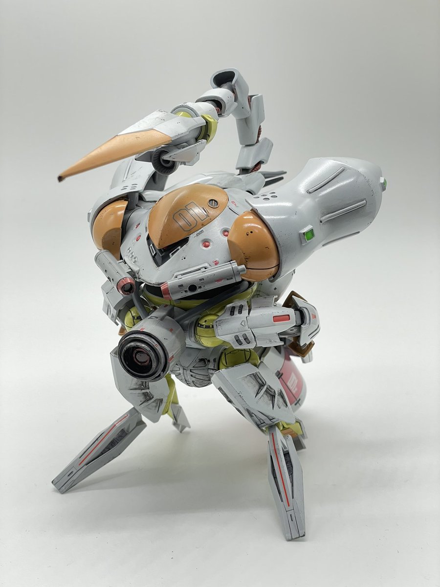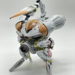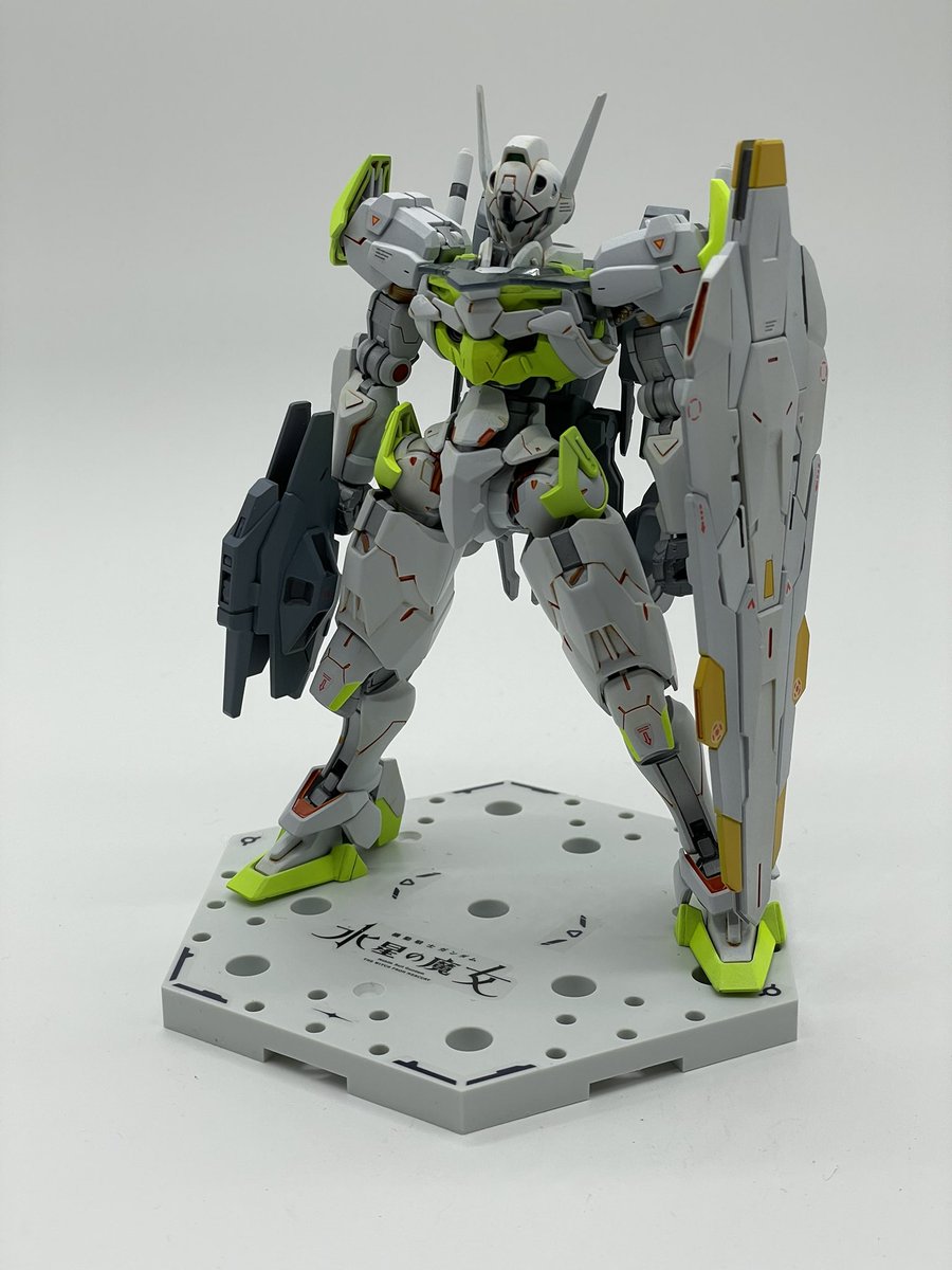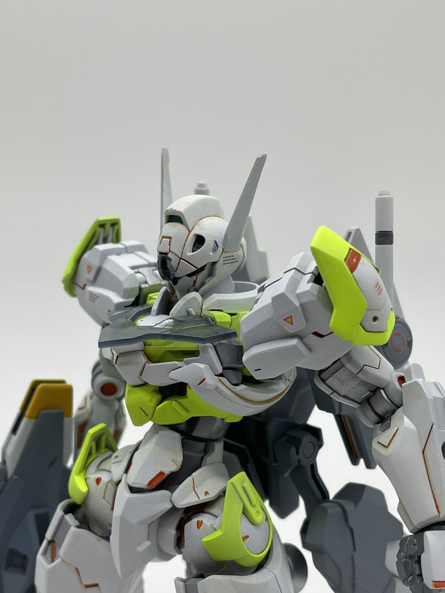 #水星の魔女 #ガンプラ好きな人たちと繋がりたい ガンダムルブリス 試作機カラー 加工はヘッド側面の角を曲面にならして小顔かしたくらい 蛍光イエローを使ってるので白地部分のスミ入れをオレンジで入れてバランスをとりました