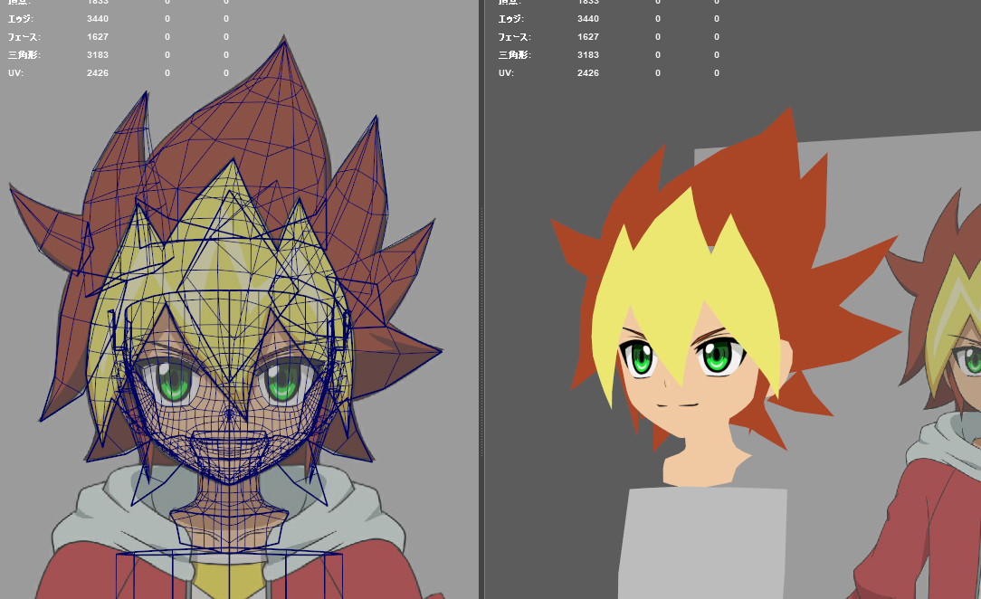 顔の法線転送は顔のモデルを潰したやつを使うのが今の所しっくりきてる
