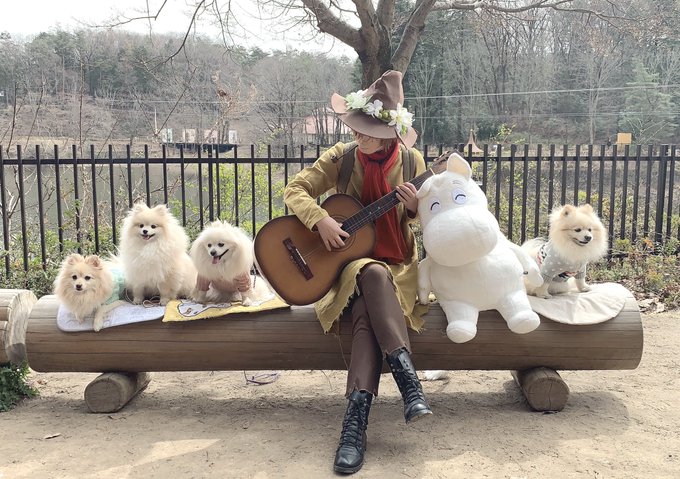 #何度でも見てほしいお気に入りを貼るタグ お散歩中のポメちゃん達との記念写真。 素敵な飼い主さんと、可愛いポメちゃんでした。小さな動物に囲まれてるスナフキンが好き(中身が自分というのはおいといて)。