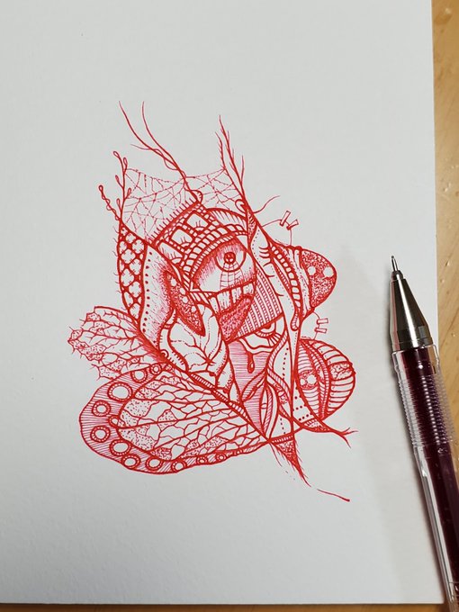 11 123 ペン画お絵描き【赤色】 #お絵描き #アナログ一発描き #art #絵柄が好みって人にフォローされたい 22/09/21 23:49