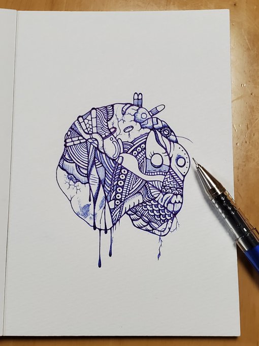 青ペン画が描けました #絵描きさんと繋がりたい #アナログ絵 #artwork #芸術作品になれるといいな